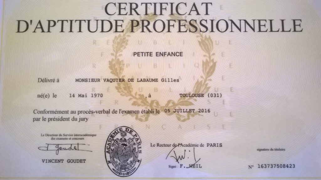 J’ai ensuite passé mon CAP petite enfance, puis un diplôme de formateur pour parents en discipline positive. J’ai deux livres : Nouveaux papas, les clés de l’éducation positive (ed. Leduc) et « Mes premiers pas de papas, un concept inédit et surtout unique au monde.